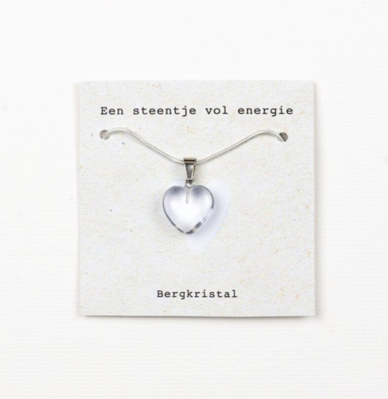 Echte zilveren ketting met bergkristal hanger in de vorm van een hart.
