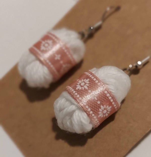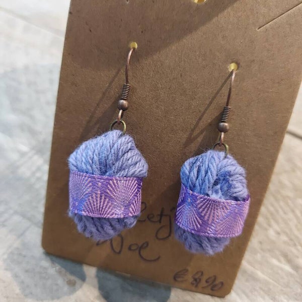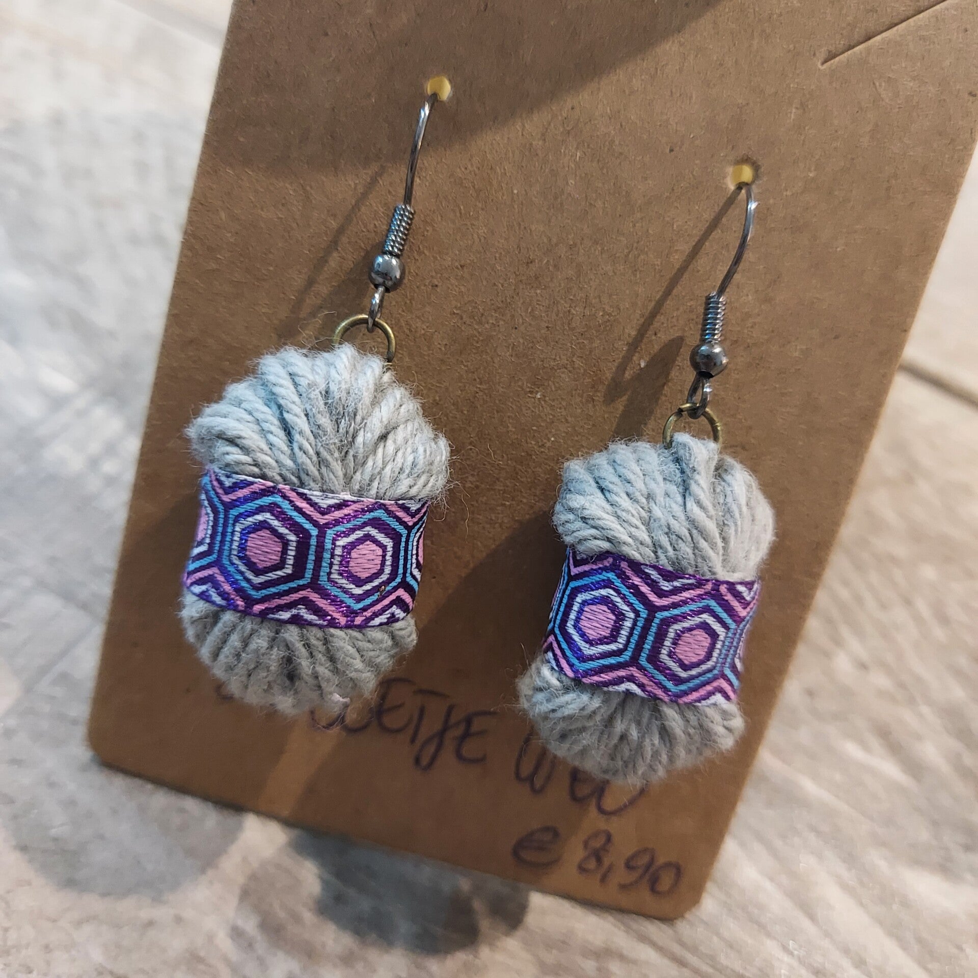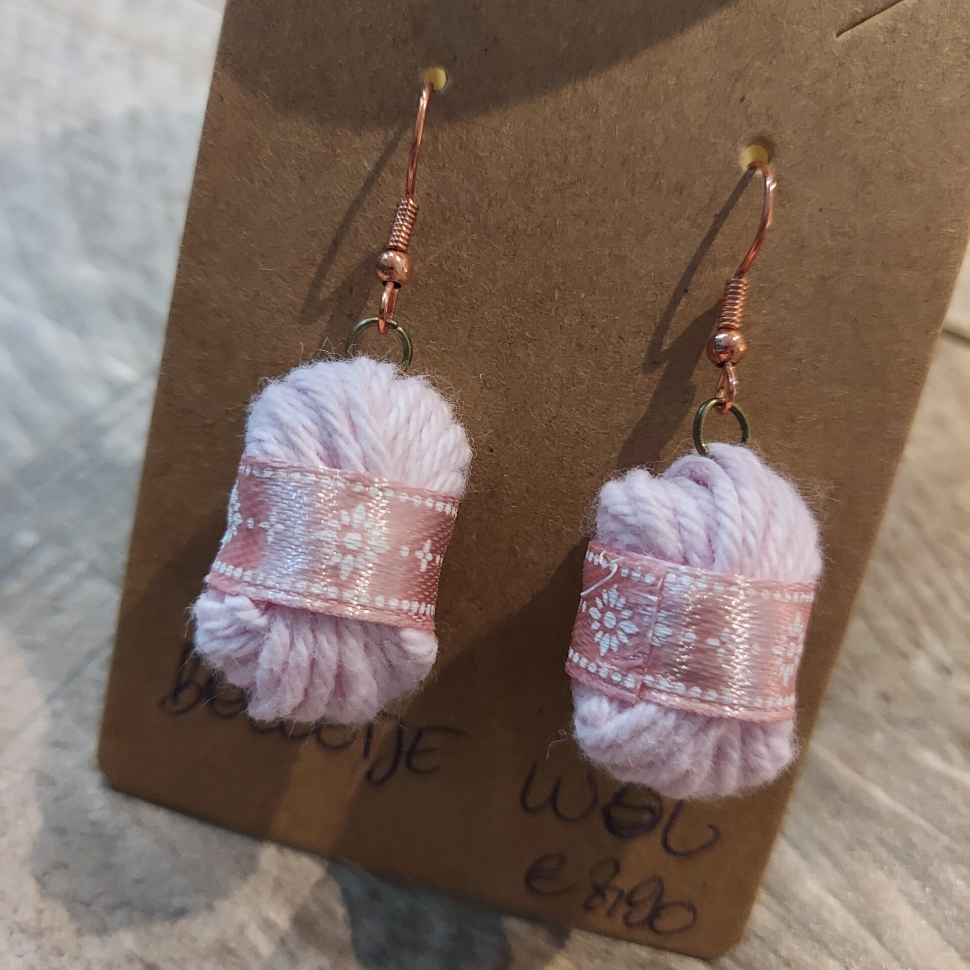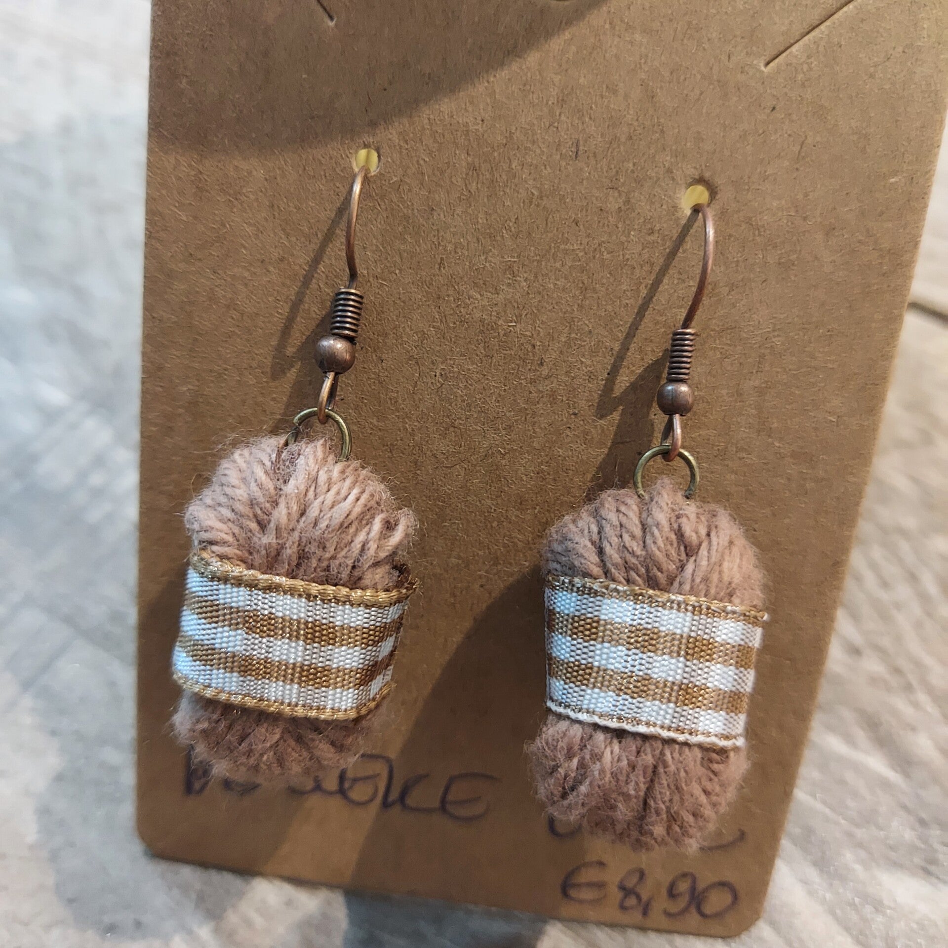 Kleine mini bolletjes wol als oorbel...voor de fervente breidsters in allerlei kleurtjes.
