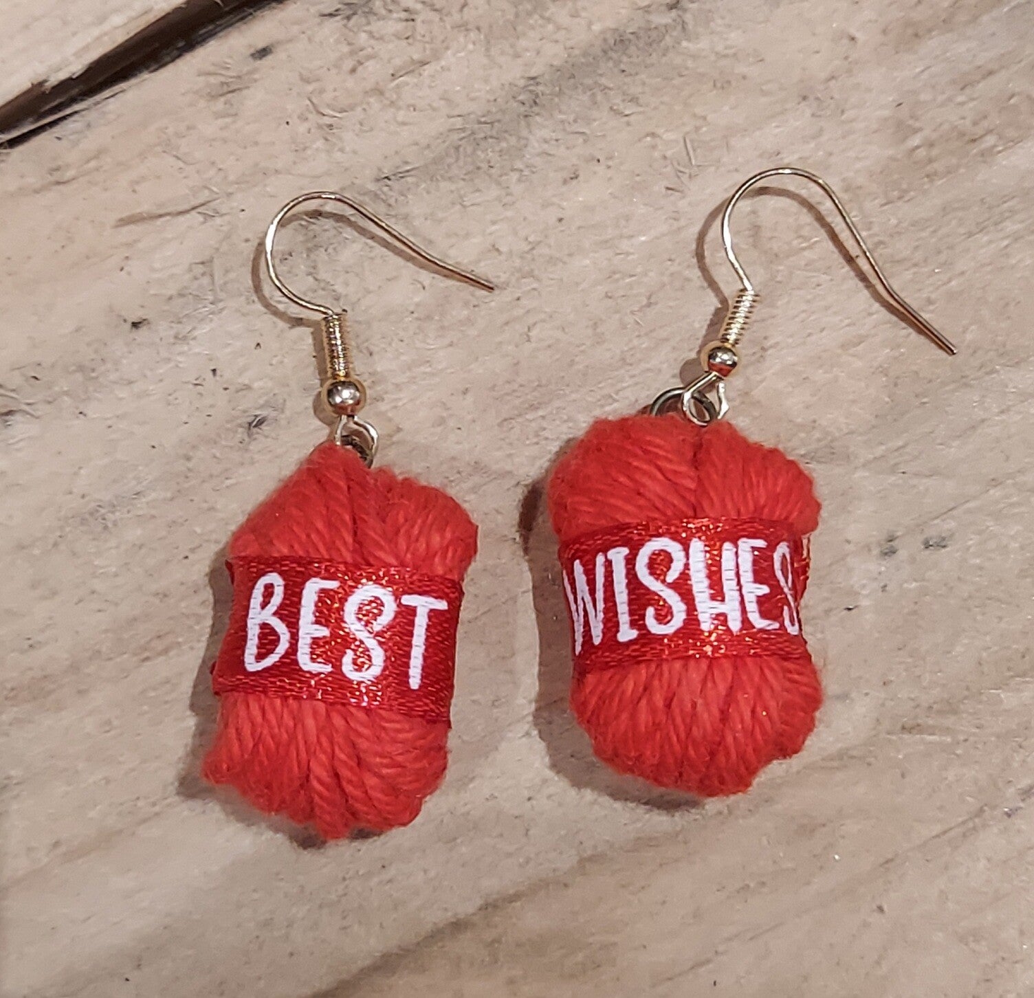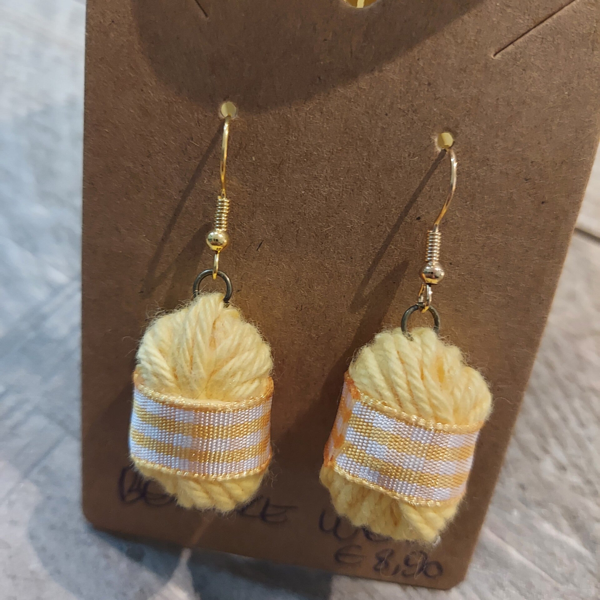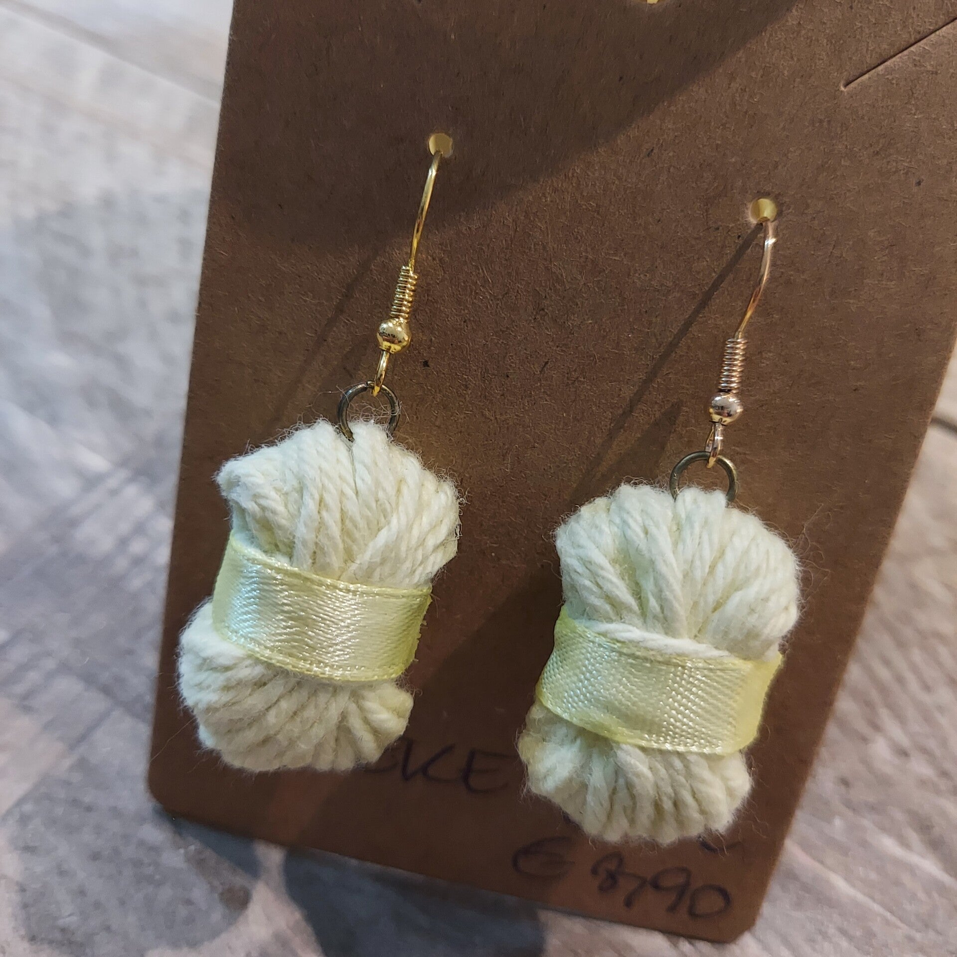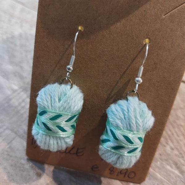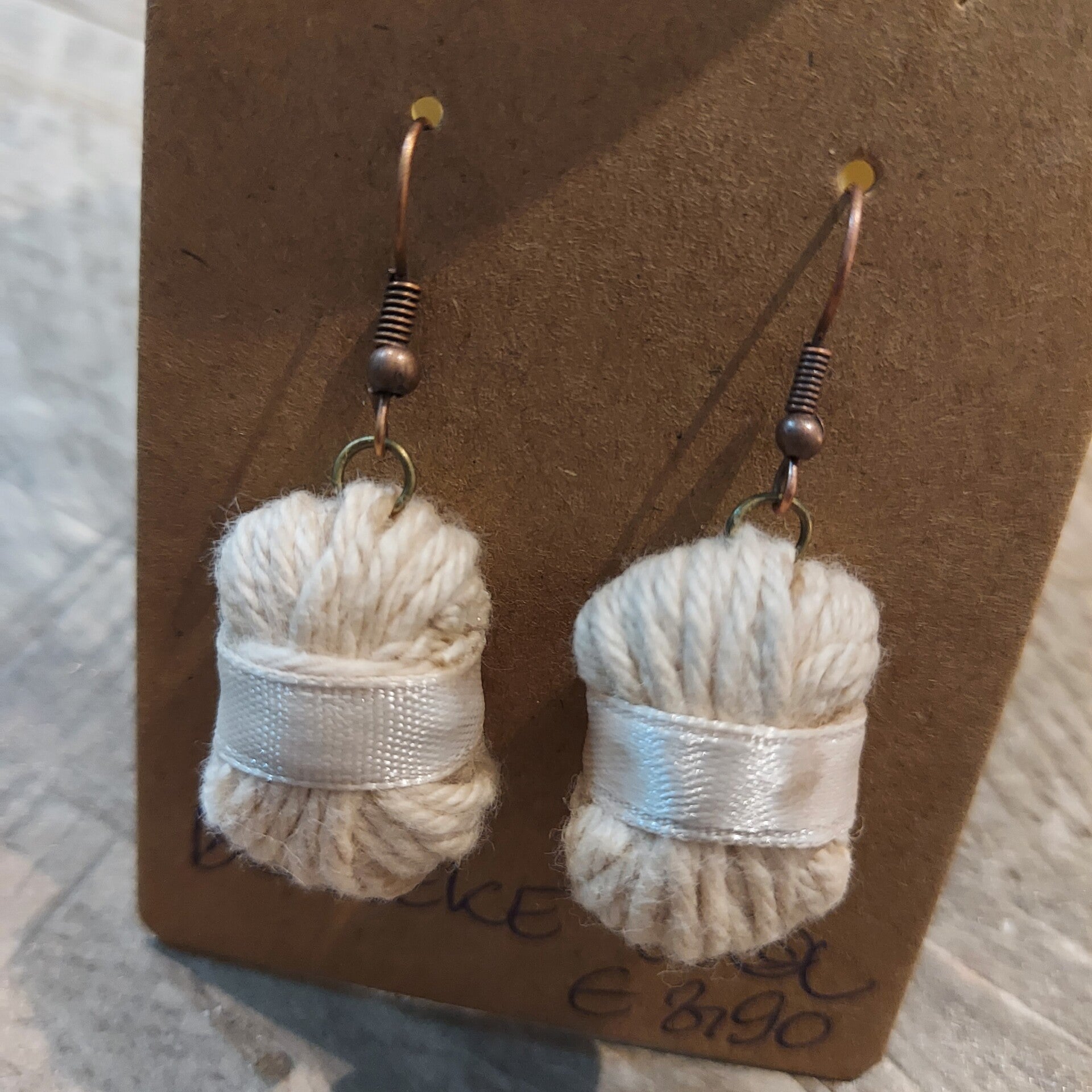 Kleine mini bolletjes wol als oorbel...voor de fervente breidsters in allerlei kleurtjes.