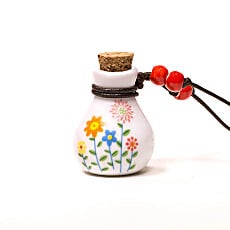 Inclusief sierkoord met kraaltjes. Kan opgehangen worden in de kast, het toilet of de auto. Een flesje met 10 ml essentiële olie is genoeg om voor lange tijd een aangename geur te verspreiden.