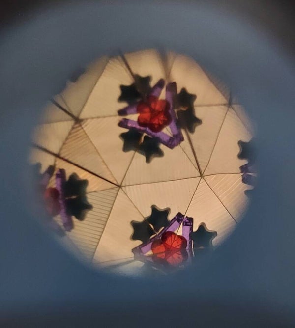 De kaleidoscoop is een echt kijkwonder. Het licht van de zon of van de lampen dat in de buis terechtkomt, โ'botst' heen en weer in de buis. Zowel de spiegels als de gekleurde/โglanzende kraaltjes weerkaatsen het licht. Uiteindelijk komt het licht in je ogen terecht, waardoor je die mooie patronen kan zien.