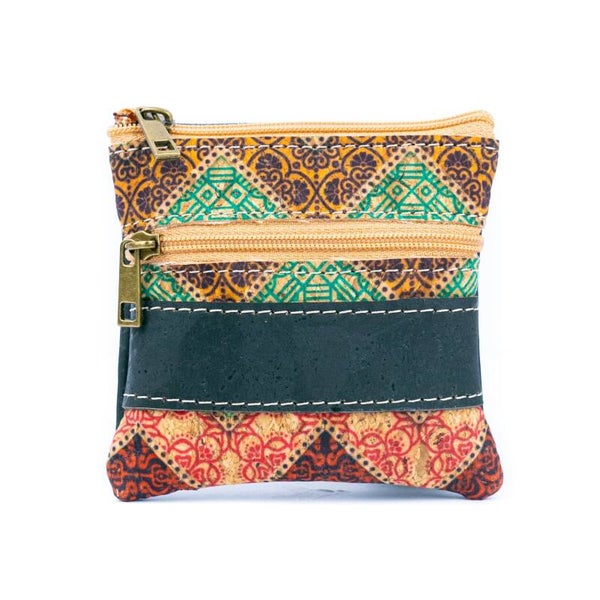 Uitgerust met dubbele ritssluitingen, biedt het gemakkelijke organisatie van munten, contant geld en kleine accessoires. De lichte maar duurzame kurkstof maakt het een uitstekend veganistisch alternatief voor leer, met een gladde, zachte textuur die waterbestendig en gemakkelijk schoon te maken is.