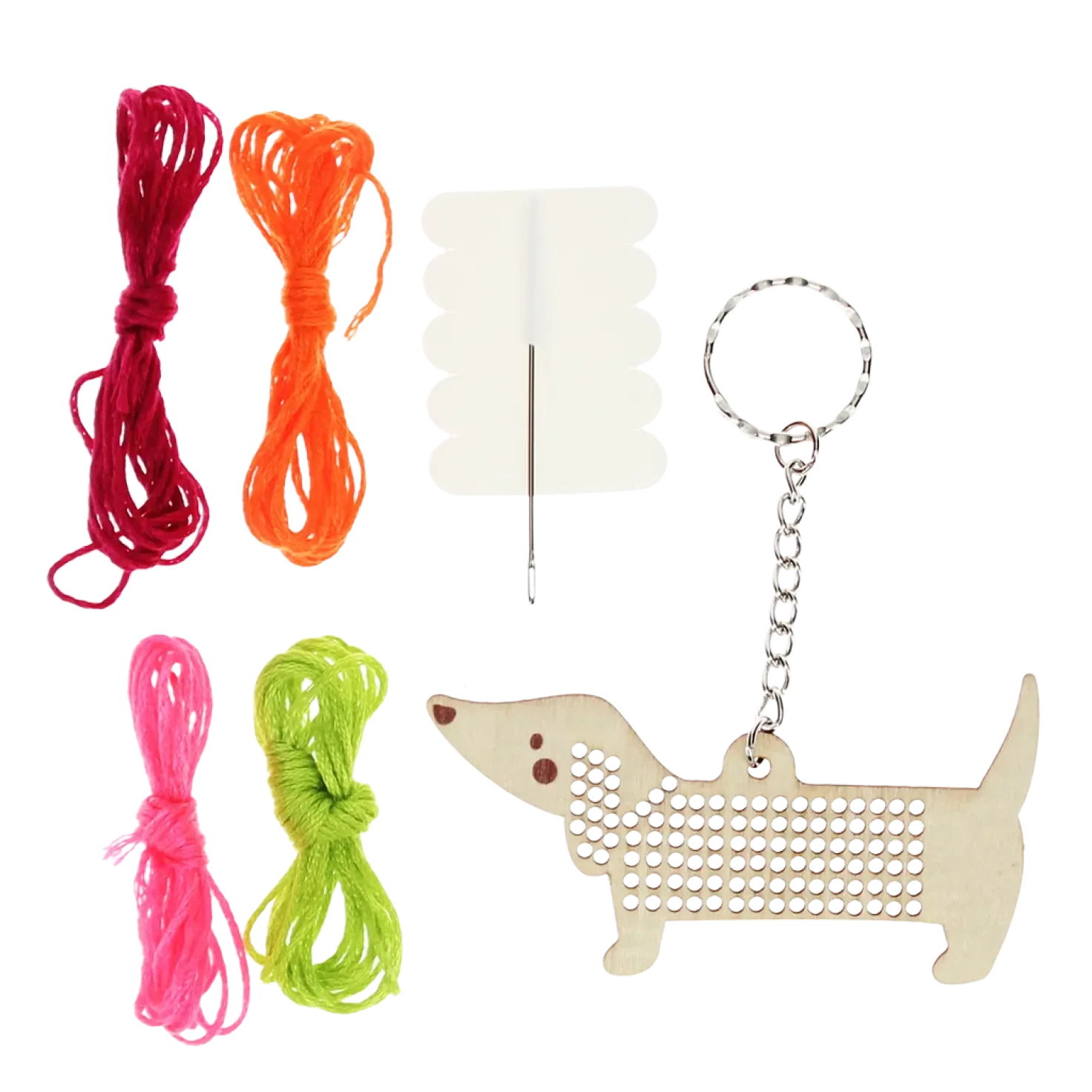 Maak een charmant handgemaakt cadeau voor jezelf of je dierbaren met deze borduur je eigen teckel-sleutelhanger. Deze gebruiksvriendelijke set heeft een houten sleutelhanger met een voorgestanst teckel-ontwerp en bevat kleurrijk garen en een kleine naald, perfect voor beginners in handwerken.