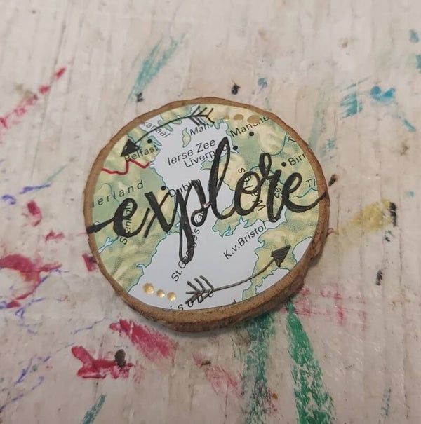 Handgeschilderd op een houten schijfje met stevig magneetje...kleine tekening, leuk woordje, tekst. Positive vibes! Leuk voor jezelf of als kleine attentie.