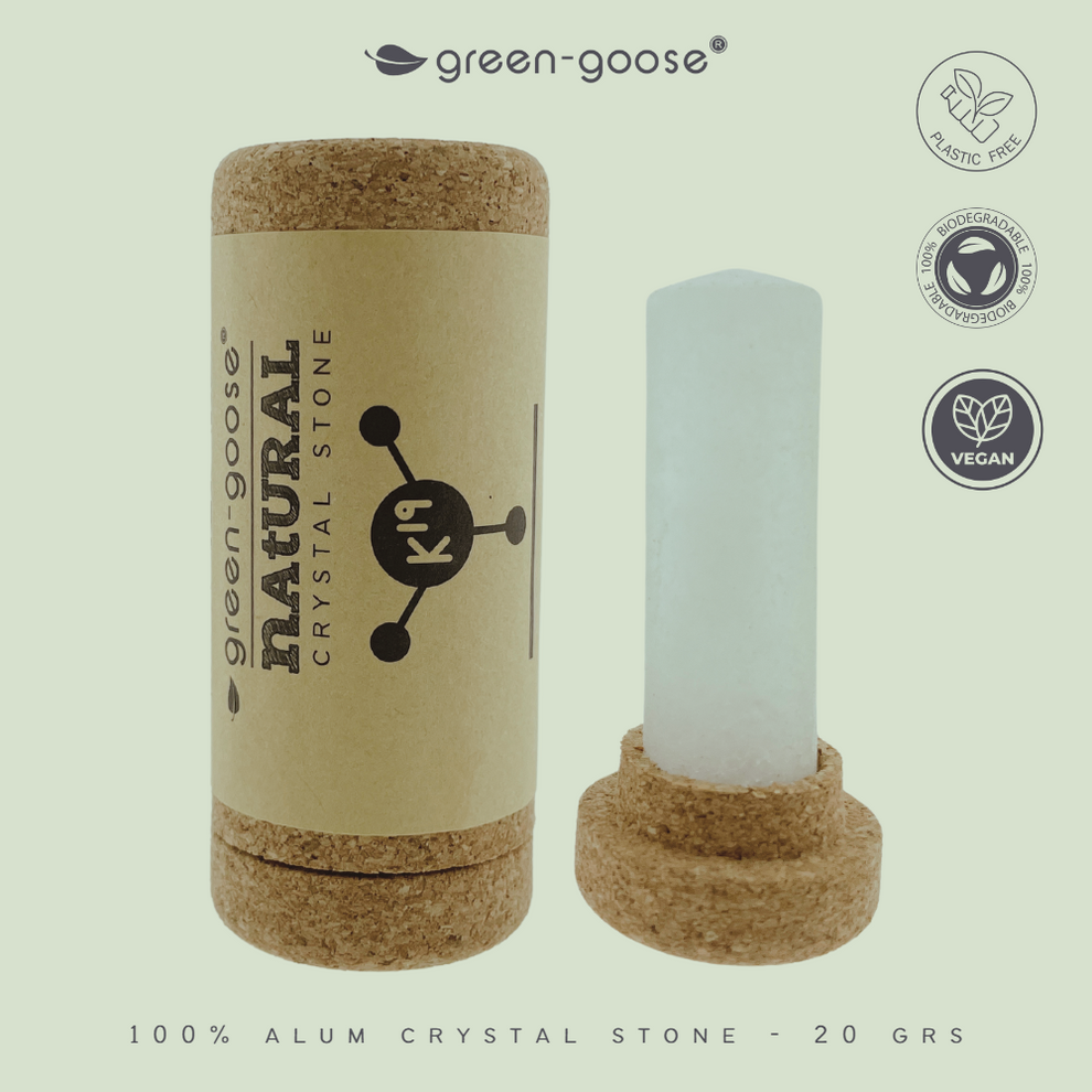 Gemaakt van natuurlijk voorkomend kristalmineraal kalium. Mild antiseptisch om scheermesbranden en irritatie te kalmeren.